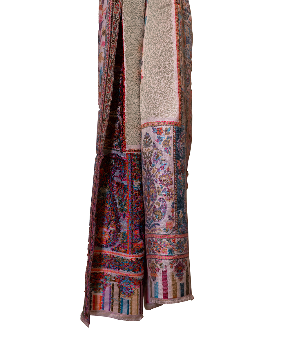 Beautiful light grey and cream matka munga silk scarf