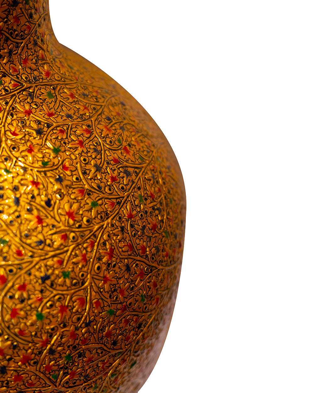 About the Craft HISTORY OF KASHMIR PAPER MACHE Paper mache was introduced to India in the 14th century by the Persian mystic Mir Syed Ali Hamdani. He was visiting the Kashmir region from Persia, and brought along skilled artisans and craftsmen.The Persian method of making paper mache melded with similar art forms from Central Asia, and a unique branch of the art of paper mache was born. Over time, Kashmiri artisans added their own flourishes to the art form, bringing attention to their creations from all around the world. Another story posits that the art was brought to Kashmir in the 15th century by Sultan Zain-ul-Abadin, son of Emperor Sikander, after his return from captivity in Saarkand for many years. During his confinement he was exposed to various central Asian craft techniques – among them, the use of paper pulp as a base for finely painted and lacquered products. When he came to Kashmir he brought many talented craftsmen and artists with him to teach the local people many skills. The interior of the Shah Hamdan mosque is a prime example of the talents passed on to Kashmiris. No matter what the story of its origin, this art was made highly popular during the Mughal rule. The art was originally known by its Iranian name Kar-i-Qalamdani in Kashmir, and initially this art was only restricted to making pen cases. Through the years, the art of paper mache has grown tremendously in the valley with stunning showpiece products being crafted these days. HOW IT IS CRAFTED Even though the idea behind this handicraft might sound relatively simple, it is a very time-consuming process and requires a lot of precision. It basically involves two main steps- Sakthsazi (making of the actual item) and Naqashi (the painting and decoration part). Sakthsazi The sakthsazi is the one involved with making the object with the pulp of paper. First of all, the waste paper is soaked in water for several days. Then, a mixture of the soaked waste paper, cloth and the straw of a rice plant is pounded manually in a stone mortar. This is pounded until the mixture becomes very fine and forms a pulp. Then, a rice based glue called ‘Atij’ is combined with this pulp mixture. This complete mixture is then applied onto the desired mould and then left to dry for a few days. After it has dried out, the artwork is very carefully separated from the mould. The artwork is basically cut in two halves to separate it from the mould and the halves are carefully joined with the help of glue. The resultant object that is obtained is known as ‘Kalib’. Then, for the next step, the kalib is handed over to the women. This process is referred to as ‘Pishlawun’. As the next step, the women smoothen out the surface of the artwork with either a stone, baked clay or a wooden file. After the object is nicely smoothened out, it is coated with a light layer of paint/ lacquer. It is coated again with a second coat of lacquer mixed with some chalk powder and water. This is again left to dry out for some time. After the sakthsazi’s work is done, the artwork/ object is handed over to the Naqash. Naqashi When the object reaches the Naqash, it is first covered with thin sheets of butter paper. The butter paper is pasted so that it acts as a barrier between the main object and the paintwork so that the object doesn’t crack. After covering with butter paper, a thin coat of paint is applied all over the artwork. This is actually the step where the object is transformed into the beautiful piece of paper mache handicraft that we know. This work is also very intricate and usually takes about 3 days to a week. The designs are first drawn free hand on the object and then they are painted. The designer uses various different motifs like flowers, fruits, birds, creepers etc. Mostly metallic paints are used for an illuminated effect. After the motifs are painted, often gold or silver is used to highlight them. Mostly the colors that are used for painting are all organic and either nature or vegetable-based. When the whole painting procedure is completed, the final step involves covering the artwork with a layer of varnish for an added shine. This is the whole procedure that goes into making paper mache crafts. It is an extensive process that requires a lot of patience and attention to detail. However, the whole process is worth it as the end result is absolutely stunning. Even though these handicrafts are made using paper, the extensive process that goes into making them is what makes these handicrafts extremely durable. Each of these individually created items has a unique story to tell. The paper mache handicraft isn’t just a source of livelihood for thousands of Kashmiri artisans but also an integral part of India’s cultural lineage. We hope that our platform helps this beautiful art form to reach the homes of conscious consumers globally, and it continues to grace the rich culture of Kashmir through more and more generations to come.