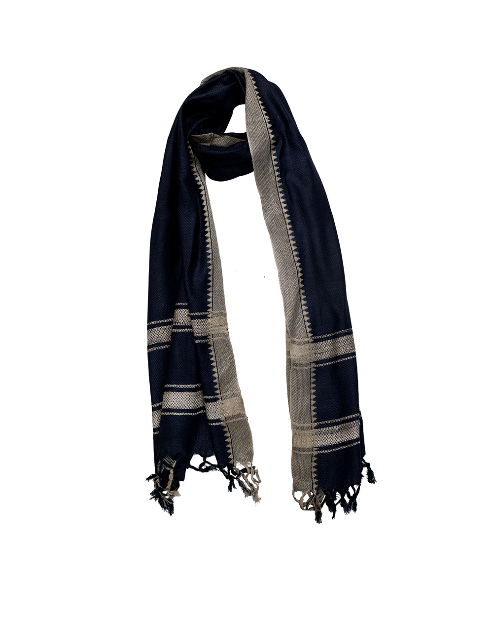 This stunning black and beige tussar eri silk scarf will get you ready to style your way into your days and evenings